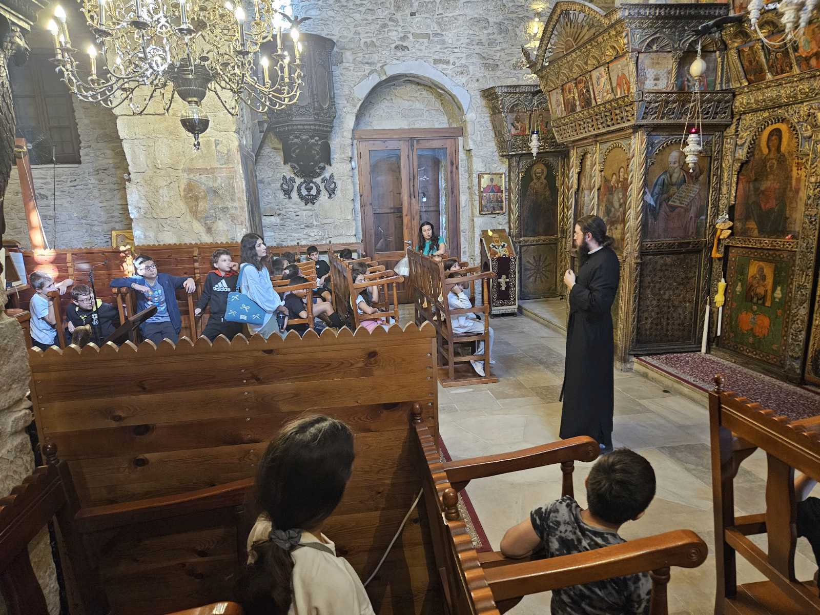 Οι Ε και Στ τάξεις επισκέφθηκαν τον ιερό ναό Παναγίας Ευαγγελίστριας στο Δάλι, όπου τους μίλησε ο ιερέας του ναού, πάτερ Σπυρίδων.